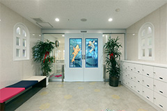 入所者様、職員の双方に快適な入浴をしていただけます。横になったままの姿勢で快適に入浴をしていただける浴室もあります。